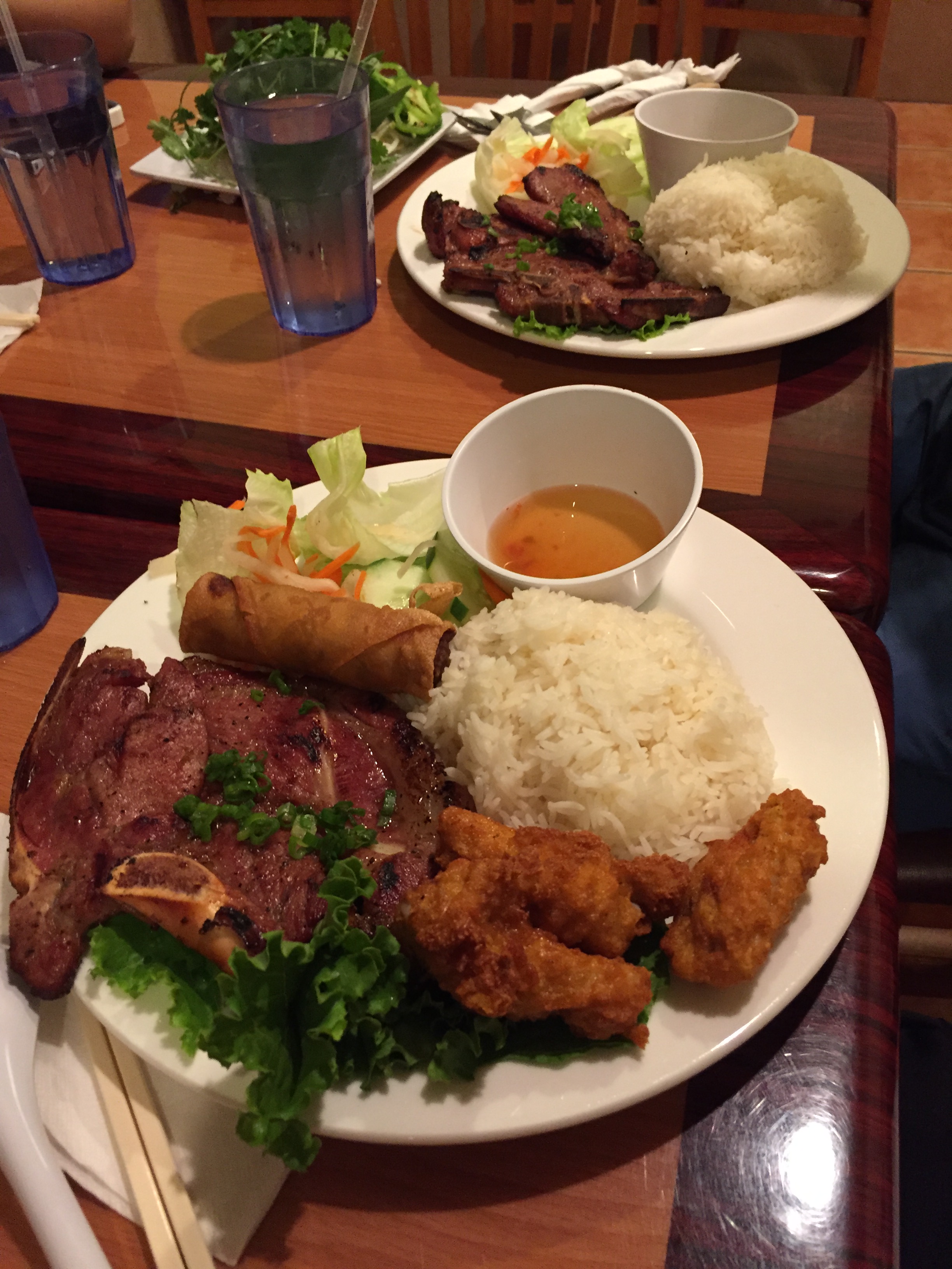The food sure is good with some hot soup(Pho). The soup is hot enough to cook even the veggies and the beef. Everyone totally enjoy the dish in front of them. It a complete course meal with noodle, meat, vegetables. Bon appetit!