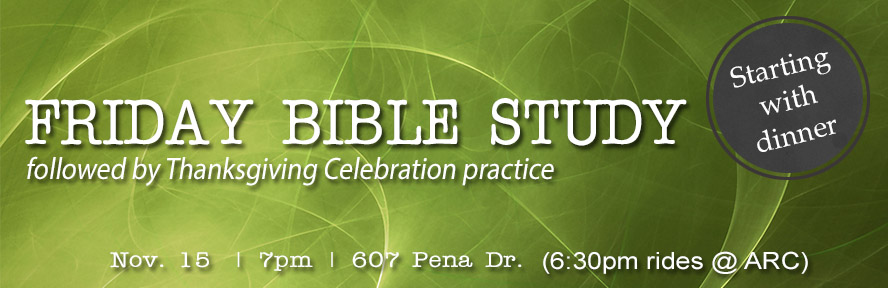 Fri., Nov. 15: IUSM Bible Study, 7pm @ 607 Pena Dr. (rides provided)
