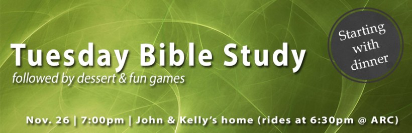 Tue., Nov. 26: IUSM Bible Study, 7:00pm @ John & Kelly’s home (6:30pm ARC rides provided)