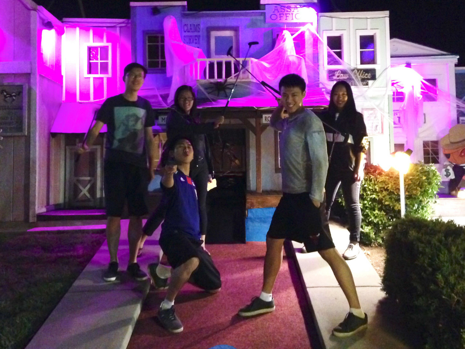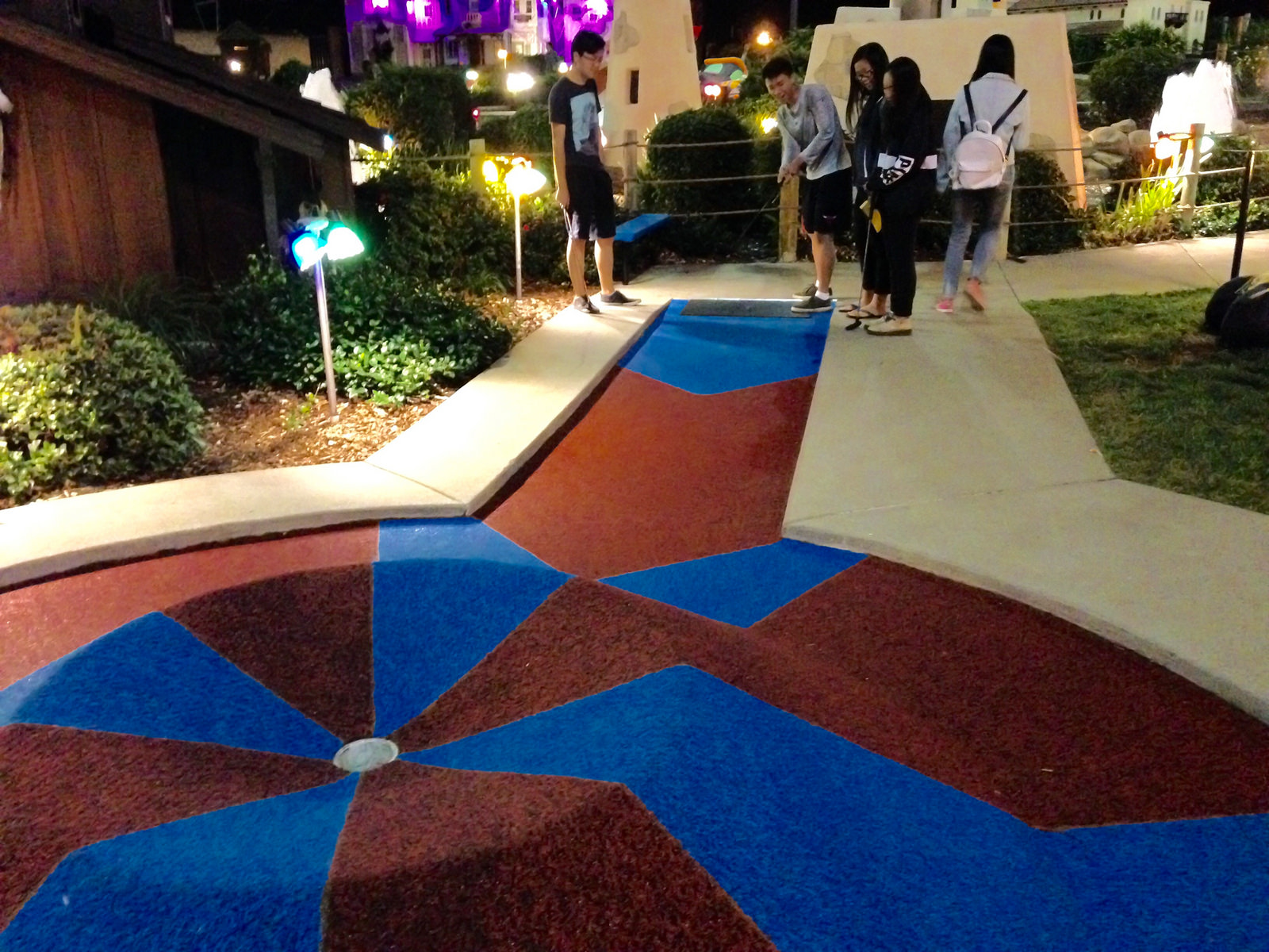 There are sure a lot of colorful lights on the miniature golf course.  The smaller size course can make anyone be a pro golfer.  Come and try yourself!